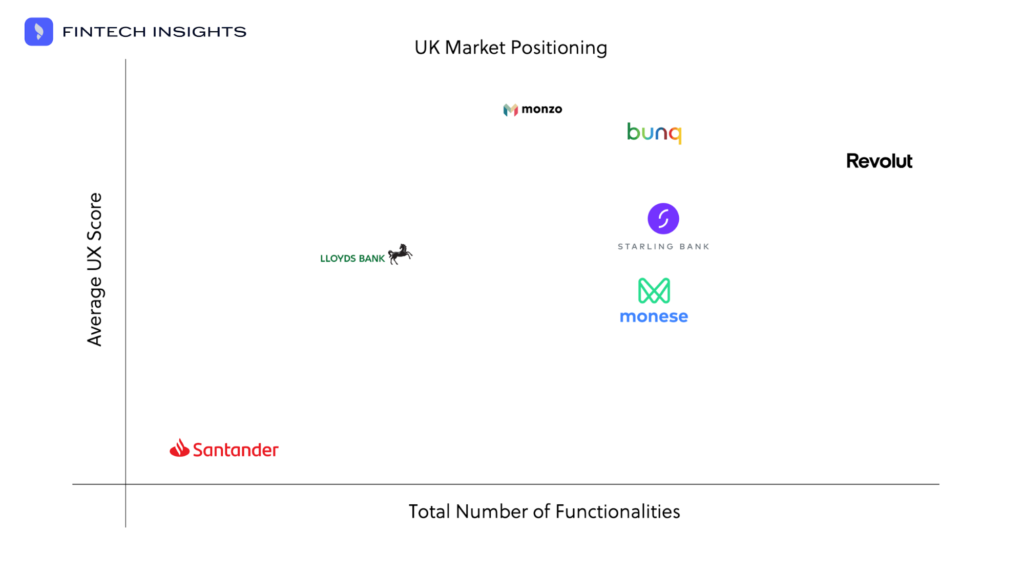 I will start by benchmarking these both Challenger Banks in the Market. In this Market I will be also adding the following players : Lloyds Bank, Santander, Revolut, Monese and bunq, since they are Banks either based in the UK, or active in the UK.